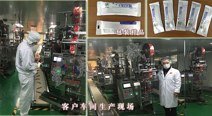 2、長條袋圓角背封包裝機與計量裝置相配即可完成計量,送料、充填制袋、日期打印、成品輸送的全部包裝過程;